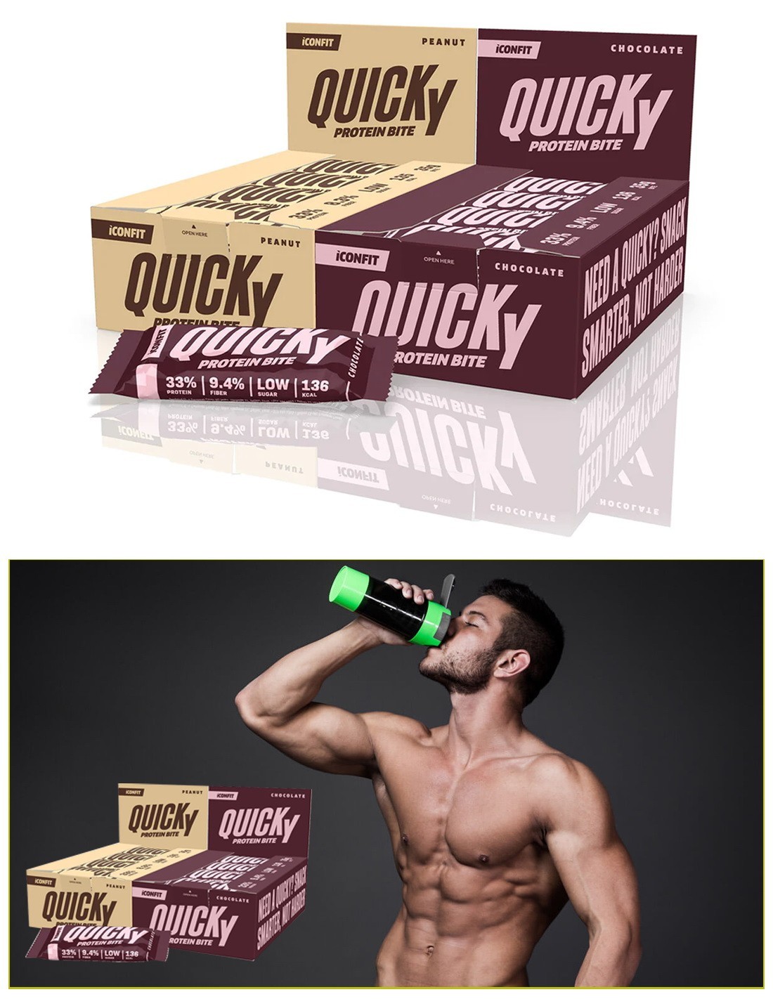 Barritas de proteínas ICONFIT QUICKY - ¡Sabrosas, sanas y rápida fuente de proteínas! Su excelente sabor, agradable textura e ingredientes de alta calidad hacen de QUICKY un tentempié ideal para personas con un estilo de vida activo que valoran la nutrición sana sin renunciar al sabor.